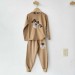 calça de moletinho com bolso e acabamento em ribana cadarço de enfeite.