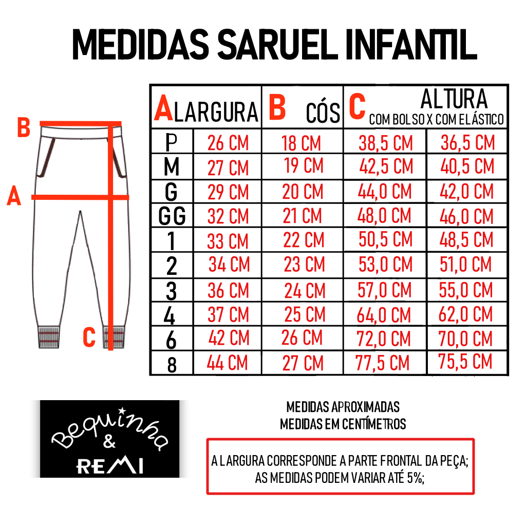Saruel com cordão sem regulagem e estampa em serigrafia.Cuidados Básicos: